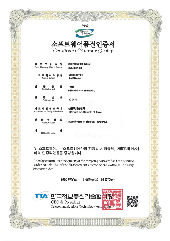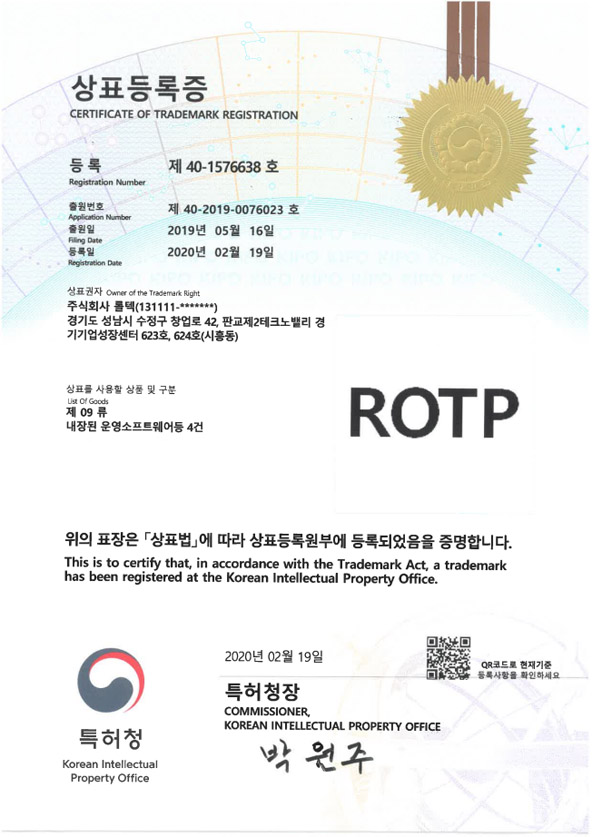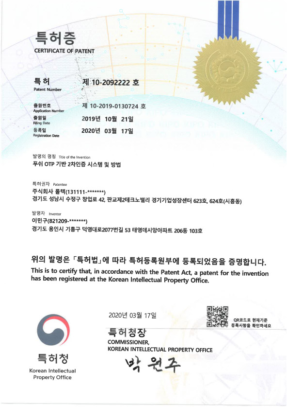 ·ÑÅØÀº ±â¾÷ºÎ¼³¿¬±¸¼Ò¸¦ ÅëÇØ OTP ÀÚü ±â¼úÀ» ÀÚµ¿Çª½Ã 2Â÷ÀÎÁõ OTP¿¡ ´ëÇØ ÀÚüÀûÀ¸·Î °³¹ßÇÏ°í Æ¯Çã¿Í GS ÀÎÁõÀÌ µî·ÏÇÏ¿© ±â¼ú·ÂÀ» ÀÎÁ¤ ¹Þ¾Ò½À´Ï´Ù.